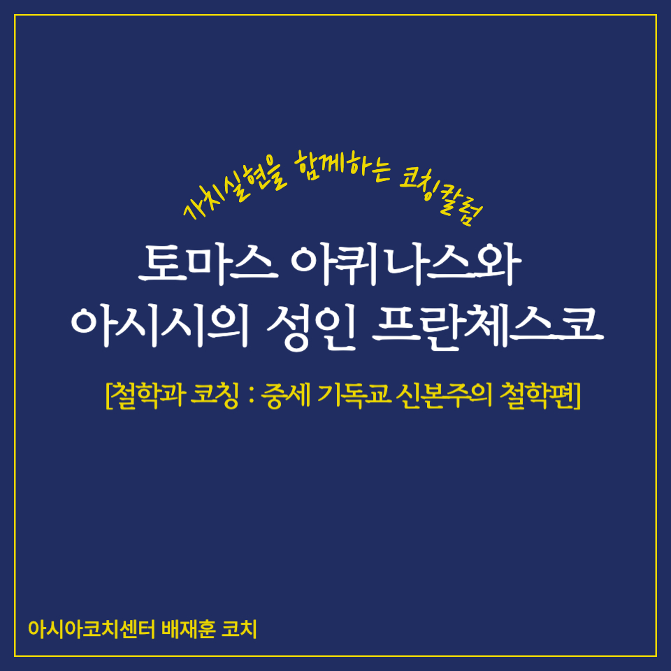 배재훈 코치님이 작성해주신 코칭 칼럼 - 토마스 아퀴나스와 아시시의 성인 프란체스코 를 소개드립니다.